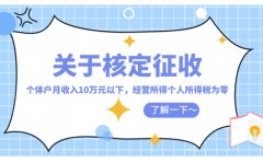 以河北核定征收個體戶政策為例:因為個體戶流程簡單,不需要繳納25%的企業(yè)所得稅及20%的分紅稅,最主要是因為個體戶可以享受核定征收。增值稅1%,附加稅0.06%,個稅可以享受核定...